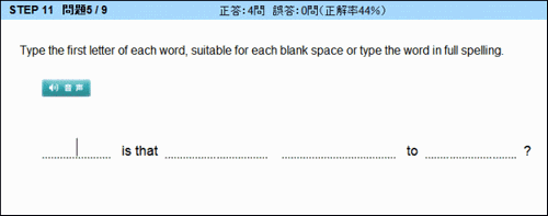 正解なら単語が青字で表示され、次の空欄にカーソルが移動します。同じように、すべての空欄の単語を答えます。