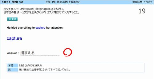 ※Practice TOEFL®Test 実践英単語A 和‐英 問題画面