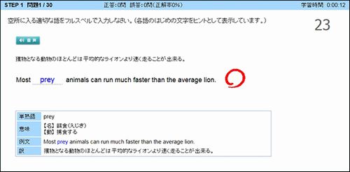 ※Practice TOEFL®Test 実践英単語A 例文演習 問題画面