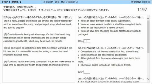 センター英語の最大の課題は、大問3に出題される「正確性と速読力を問う長文読解」です。 TLTソフトは、過去問を総動員することはもちろん、数多くの入試長文を徹底的に演習する仕組みで、十分満点がとれる画期的なトレーニング内容になっています。