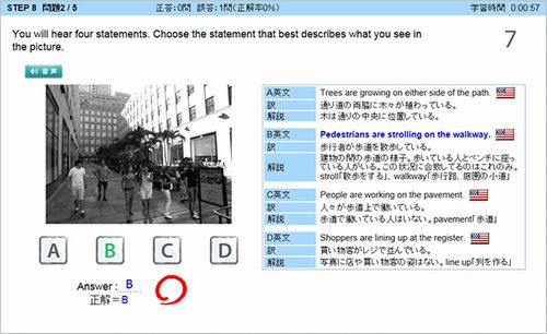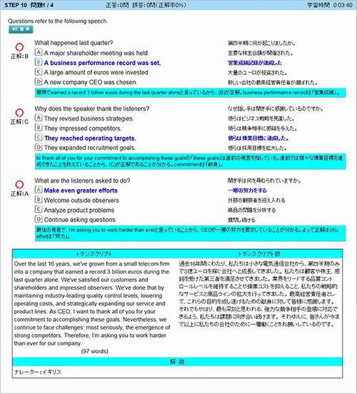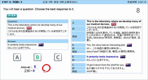 音声はすべてネイティブ発音、正誤判定はTLTソフトが行い間違えた問題を記録していきます。 苦手な項目や問題は自動的に再出題するので、効率よく学習できます。